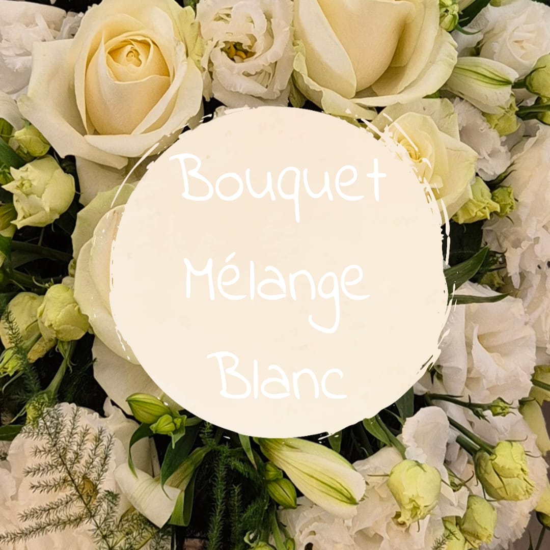 Nous confectionnons pour vous un bouquet aux pures nuances de blanc, un harmonieux mélange de roses et de diverses fleurs fraîches, soigneusement sélectionnées selon l’arrivage du jour et le rythme des saisons